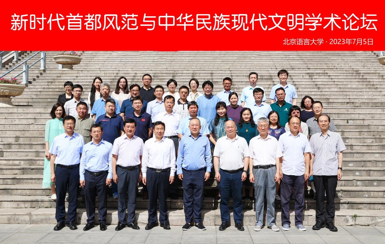 7月5日,由北京语言大学中华文化研究院首都国际文化研究基地主办的“新时代首都风范与中华民族现代文明”学术论坛,在北京语言大学综合楼909会议室举行。北京语言大学校长段鹏、新华社北京分社副社长邓诗微、北京市社科联副主席崔占辉、中国民间文艺家协会分党组书记邱运华、中国戏曲学院院长尹晓东等出席论坛开幕式并先后致辞。来自北京大学、中国人民大学、北京师范大学、中央民族大学、中国传媒大学、中国戏曲学院及北京语言大学等首都高校50余位专家学者参加学术研讨。