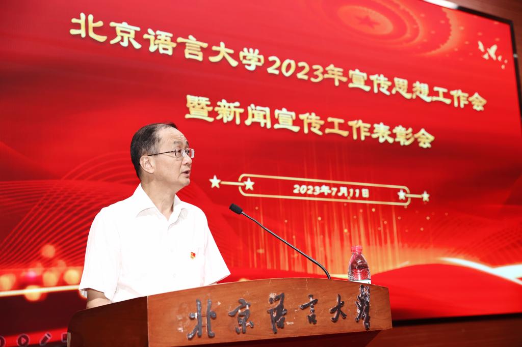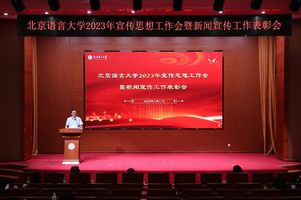 锚定思想谋大局,突出特色破难题。7月11日,北京语言大学2023年宣传思想工作会暨新闻宣传工作表彰会在逸夫报告厅召开。校党委书记倪海东,校党委副书记魏晖,党委常委、统战部部长吕静,校长助理、研究生院院长郭鹏,中层干部、本研辅导员、新闻通讯员等200余人参加了会议。