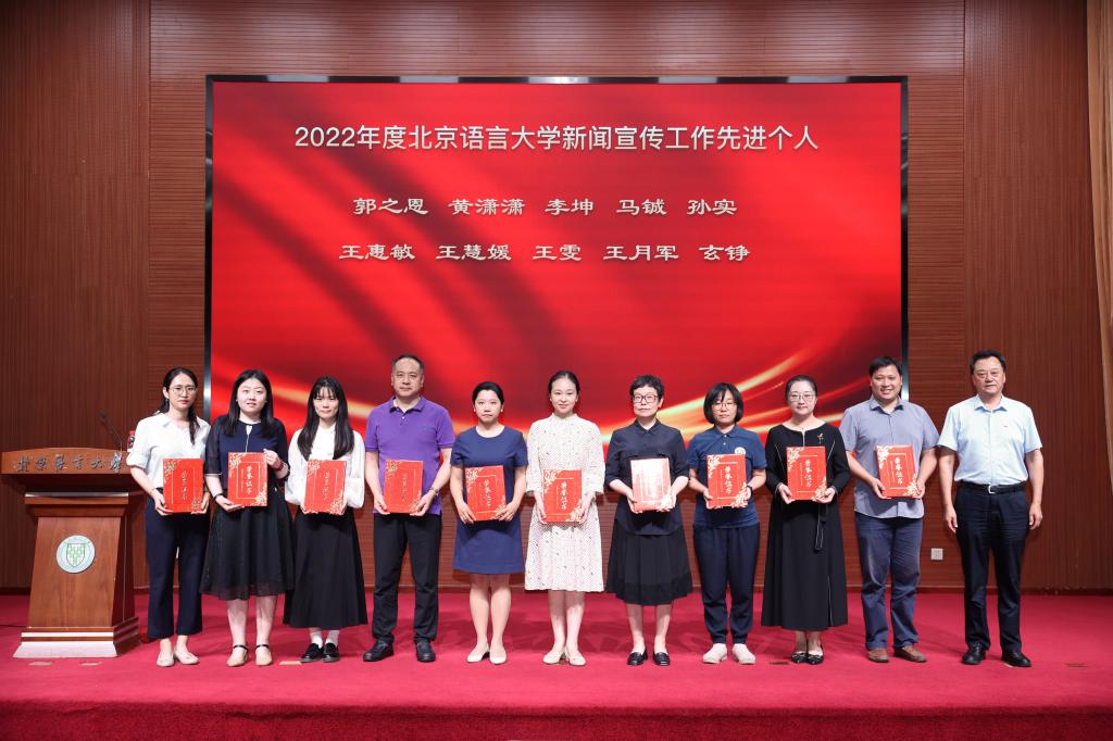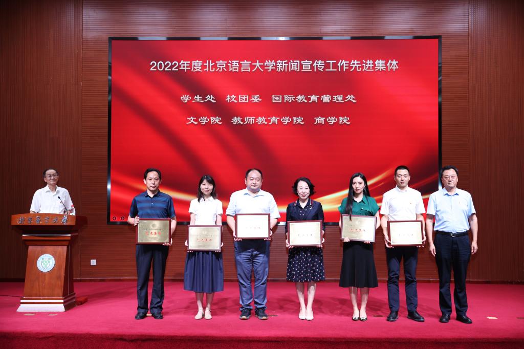 校党委副书记魏晖主持大会,并宣读了《中共北京语言大学委员会关于表彰2022年度“桐薪杯”新闻宣传工作先进集体、新闻宣传工作先进个人、十佳网站、十佳新媒体、新媒体创新之星的决定》。学生处等6个单位被评为新闻宣传工作先进集体,李坤等10人被评为新闻宣传工作先进个人,北语纪检监察网等10个网站被评为十佳网站,北语学工等10个新媒体被评为十佳新媒体,陈军芳等10人被评为新媒体创新之星。