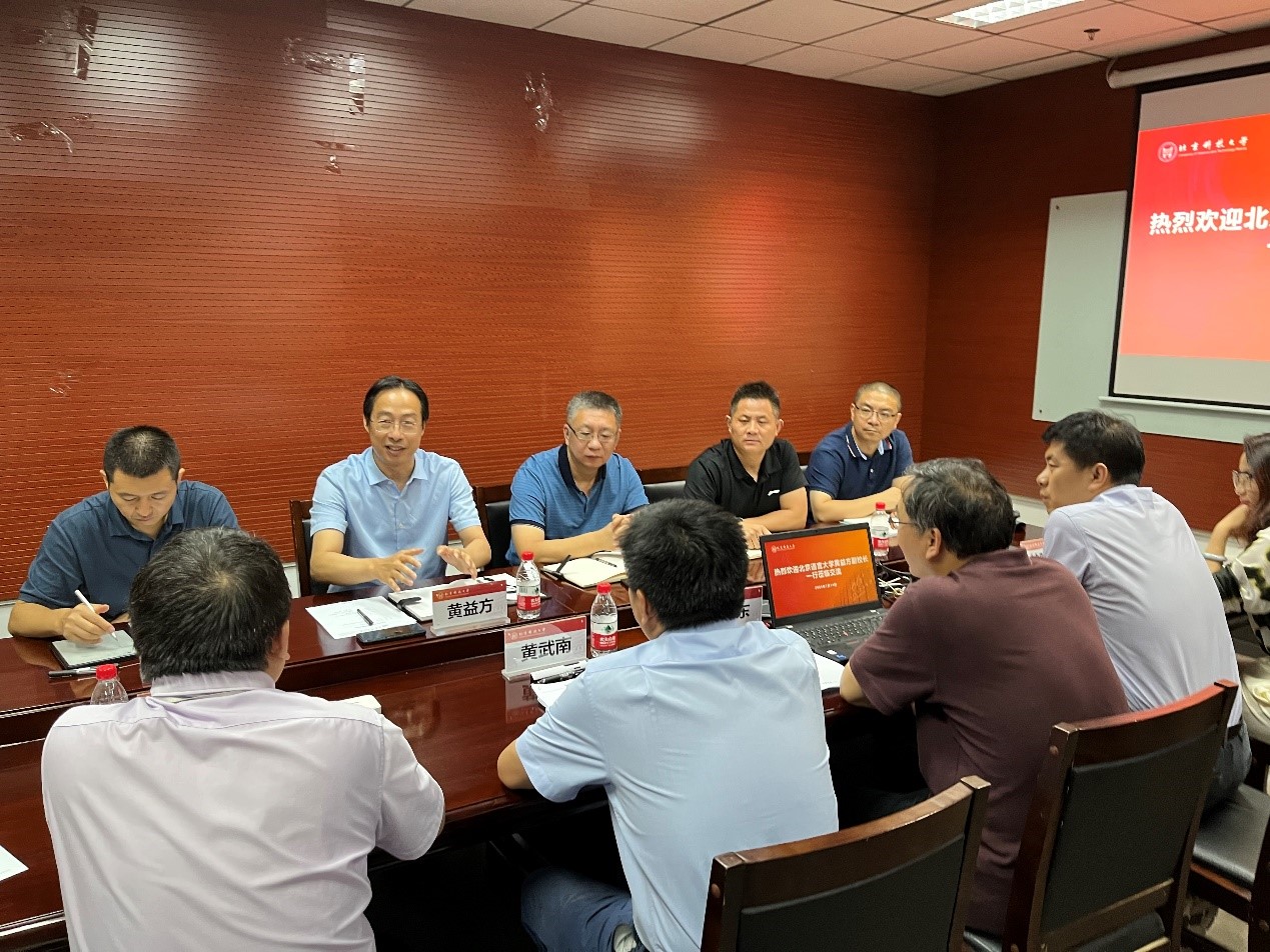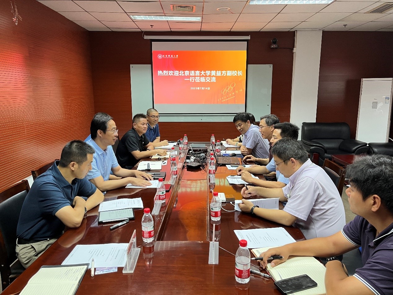 为深入学习贯彻习近平新时代中国特色社会主义思想,学习兄弟院校雄安校区建设经验,7月14日下午,北京语言大学党委常委、副校长黄益方率队到北京科技大学调研雄安校区建设情况。北京科技大学党委常委、副校长黄武南接待我校一行,座谈会由北京科技大学雄安校区建设项目指挥部副总指挥金仁东主持。我校国内合作办公室主任郭力、学生处处长武玉洲、科研处副处长(主持工作)黄伟、基建处处长朱明靖等陪同调研。
