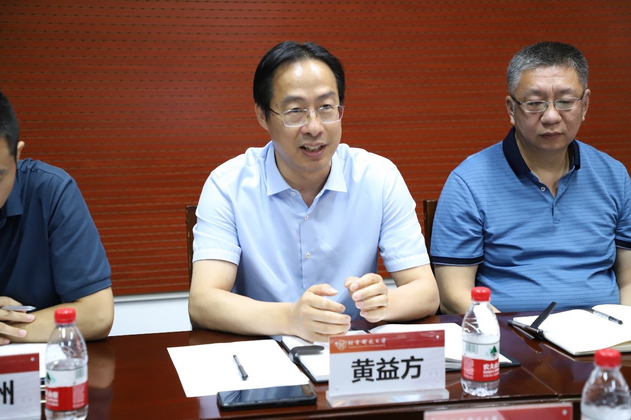 座谈会上,黄武南代表学校对黄益方等一行人的到来表示热烈欢迎,黄益方介绍北语情况及本次调研目的。会上,北科雄安校区建设指挥部副总指挥金仁东介绍了北科雄安校区的筹备情况及规划建设工作进展。