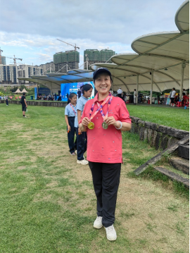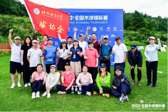 2023 年全国木球锦标赛于 7 月 9 日—11 日在贵州省黔南州龙里县中铁国际生态城顺利举行。本期赛事为期三天,共设杆数赛、球道赛两个项目。北京语言大学共有24名选手参加比赛,在比赛中为学校赢得了荣誉,展现了卓越的赛事水平和顽强的拼搏精神。其中赵东风老师和穆美山老师夺得了杆数赛D组混合双打冠军,李晨露老师和刘丽艳老师获得了一杆过门奖,北语木球团体还获得了杆数赛D组男子团体、杆数赛D组女子亚军、杆数赛C组男子团体第四名等多项奖项。