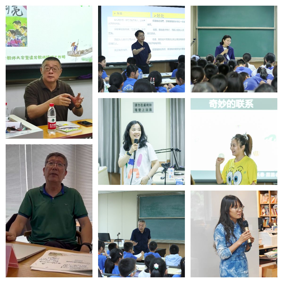 著名儿童文学作家刘海栖、安波舜、知名画家九儿、田宇等9位创作者,特级教师张祖庆、周群、李祖文等六十多位中小学名师,与参会的300多位优秀教师深度交流读写教育话题,精读儿童文学作品,开展小班精研实作,实践了从一本书到一堂课的魔法。