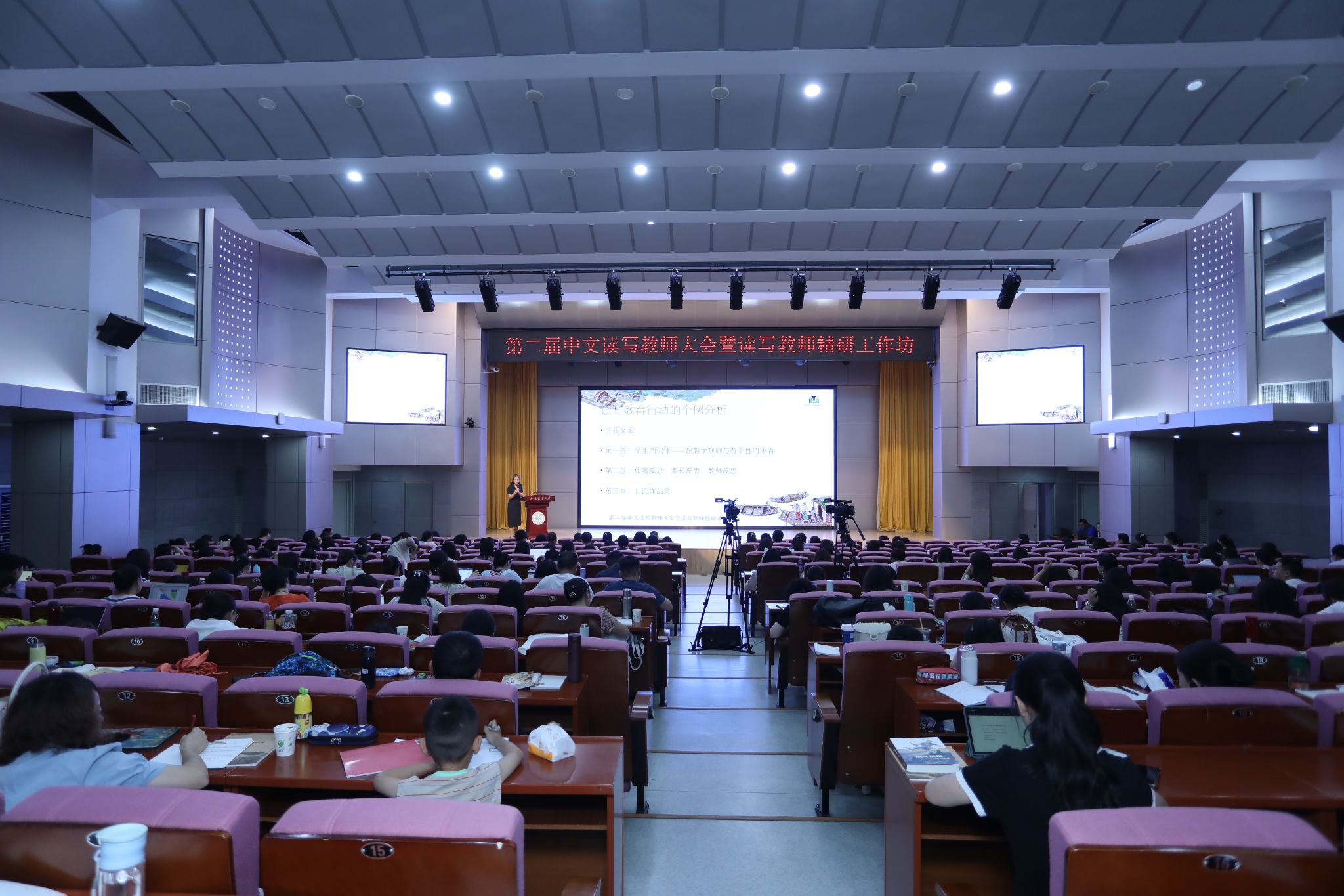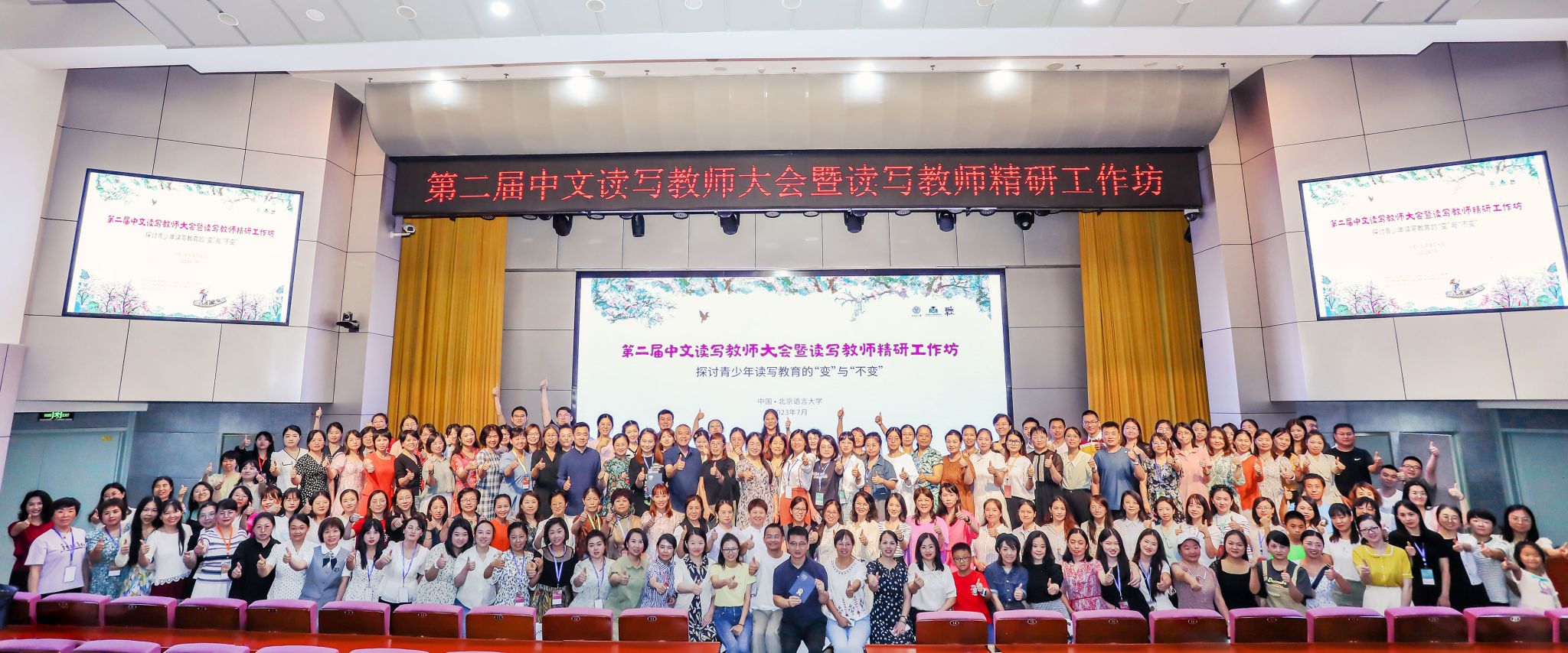 本届大会由北语读写研究中心主办,为期4天半,采取主论坛+分论坛+精研小班结合的形式,共计开展了10场学术讲座,9堂名师公开课、9场读写教育圆桌会、9场作家下午茶,9堂优质展示课,来自全国各地的300多位中小学老师参与大会,共同追寻读写教育的桃花源。