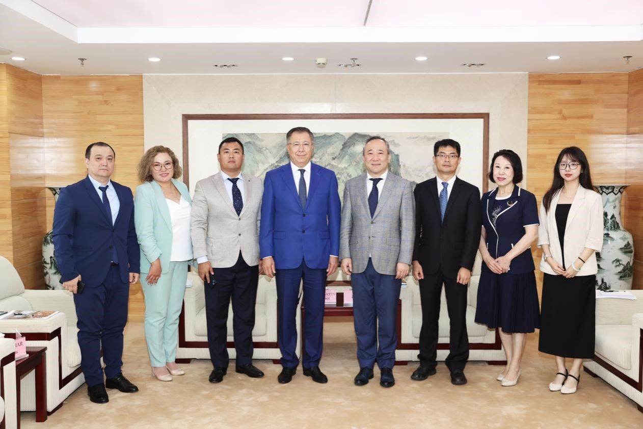 7月31日,段鹏校长会见哈萨克斯坦国立大学校长占塞伊特·图伊梅巴耶夫一行。哈萨克斯坦共和国驻华大使馆参赞艾马哈诺夫·阿布-塔利普,哈萨克斯坦国立大学商务办公室负责人高哈尔·阿尔玛斯、东方研究学院中文系教师杜森巴伊·古普耐陪同访问。我校国际合作与交流处处长董川、国际教育管理处处长陈丽霞参加会见。