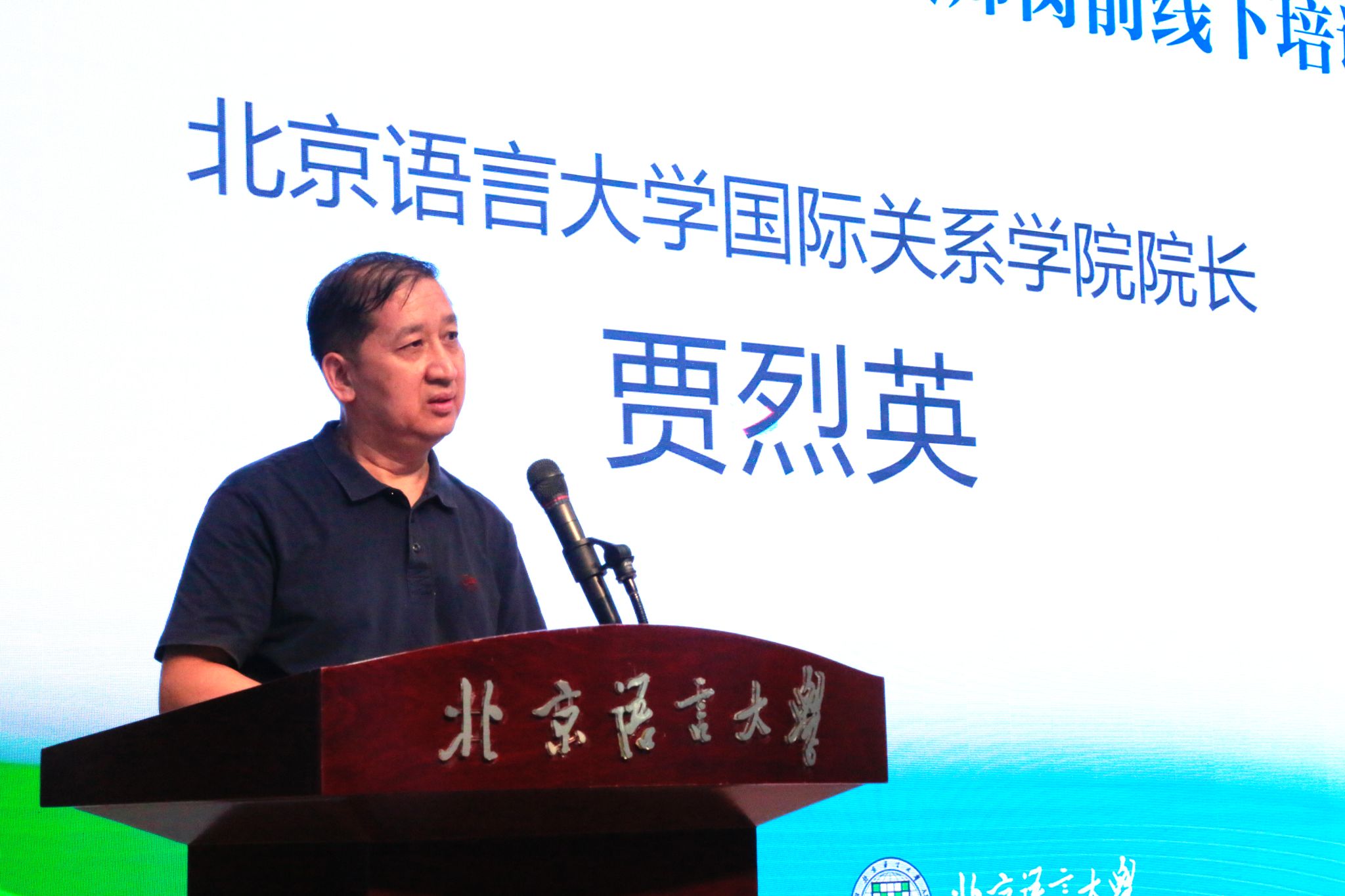 北京语言大学国际关系学院贾烈英院长作为培训专家代表发言,他希望参训教师能够在赴任期间妥善处理好个人情绪,以积极的言行为国家代言,理性思考个人职业规划,在百年未有之大变局的时代勇于接受挑战,实现人生价值。