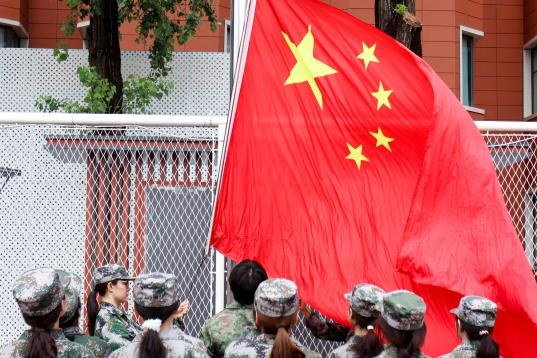 下午四点,开营仪式在庄严的升国旗、奏唱国歌仪式中拉开帷幕。北京语言大学国旗护卫队承担此次升旗工作。各连整齐列队、蓄势待发,全体人员庄严肃穆。随着鲜艳的国旗高高升起,同学们迎接着雨后的新阳,憧憬着未来十二天的挑战与收获。