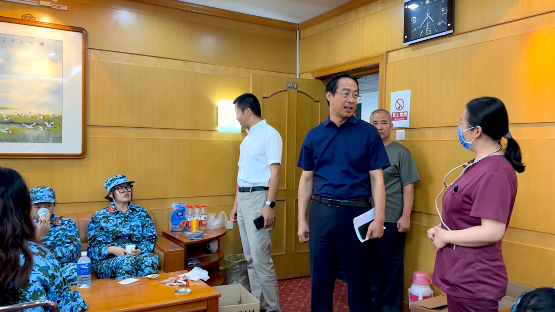 仪式结束后,黄益方副校长前往医务室慰问了校医、应急及后勤等工作人员,并对身体不适的同学进行了亲切的问候,对同学们的身体健康表示关怀,希望同学们平时加强体育锻炼,养成健康的生活习惯。