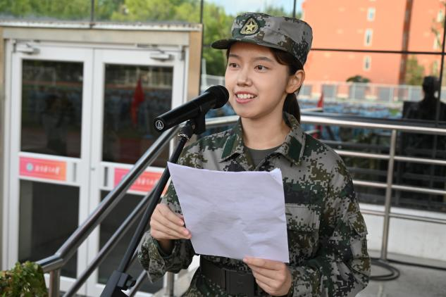 接下来,来自2022级新闻传播学院网络与新媒体专业的王婧涵作为学生代表发言,她从“重任在肩”、“涵养志气”、“强健身心”三个方面阐述了军训对于当代大学生的重要意义,并代表北语军训团全体参训学生郑重承诺:一定严守纪律,听从指挥;刻苦完成训练;发扬团结协作精神,凝聚力量,以高标准、严要求完成这人生中的重要一课。