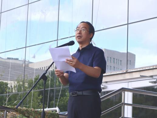 军训教官代表发言。他首先代表全体教官对全校师生的充分信任表示由衷感谢,并致以崇高的敬意。随后他提出了对同学们的三点希望:一是希望在军训中培养崇高坚定的理想信念;二是希望在军训中培养高昂旺盛的战斗精神;三是希望在军训中培养令行禁止的严明纪律。