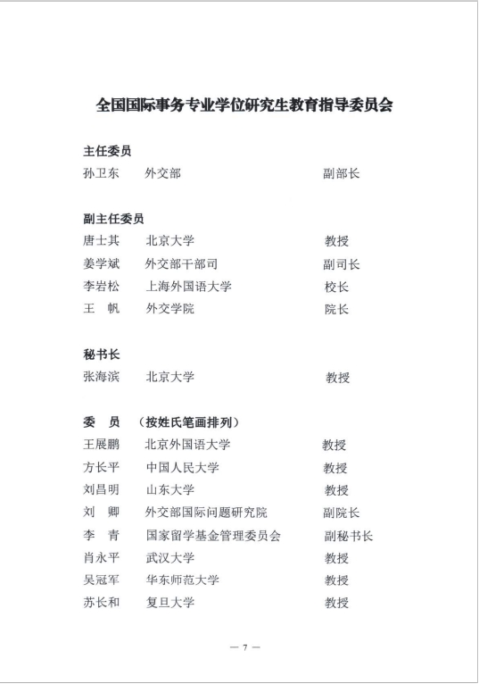 近日,国务院学位委员会、教育部、人力资源社会保障部联合下发《关于成立和调整全国应用伦理等 12 个专业学位研究生教育指导委员会的通知》(学位﹝2023﹞7号),决定成立全国国际事务等9个专业学位研究生教育指导委员会。我校国际关系学院院长贾烈英教授成功当选首届全国国际事务专业学位研究生教育指导委员会委员,表明我校专业学位研究生教育能力和水平的有效提升。