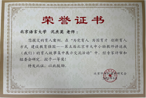国际中文学院院长沈庶英教授提交的育人案例《课程育人引领我讲好当代中国故事》荣获一等奖,外国语学部曹泽煌副教授提交的育人案例《师生齐心,其利断金》荣获二等奖。