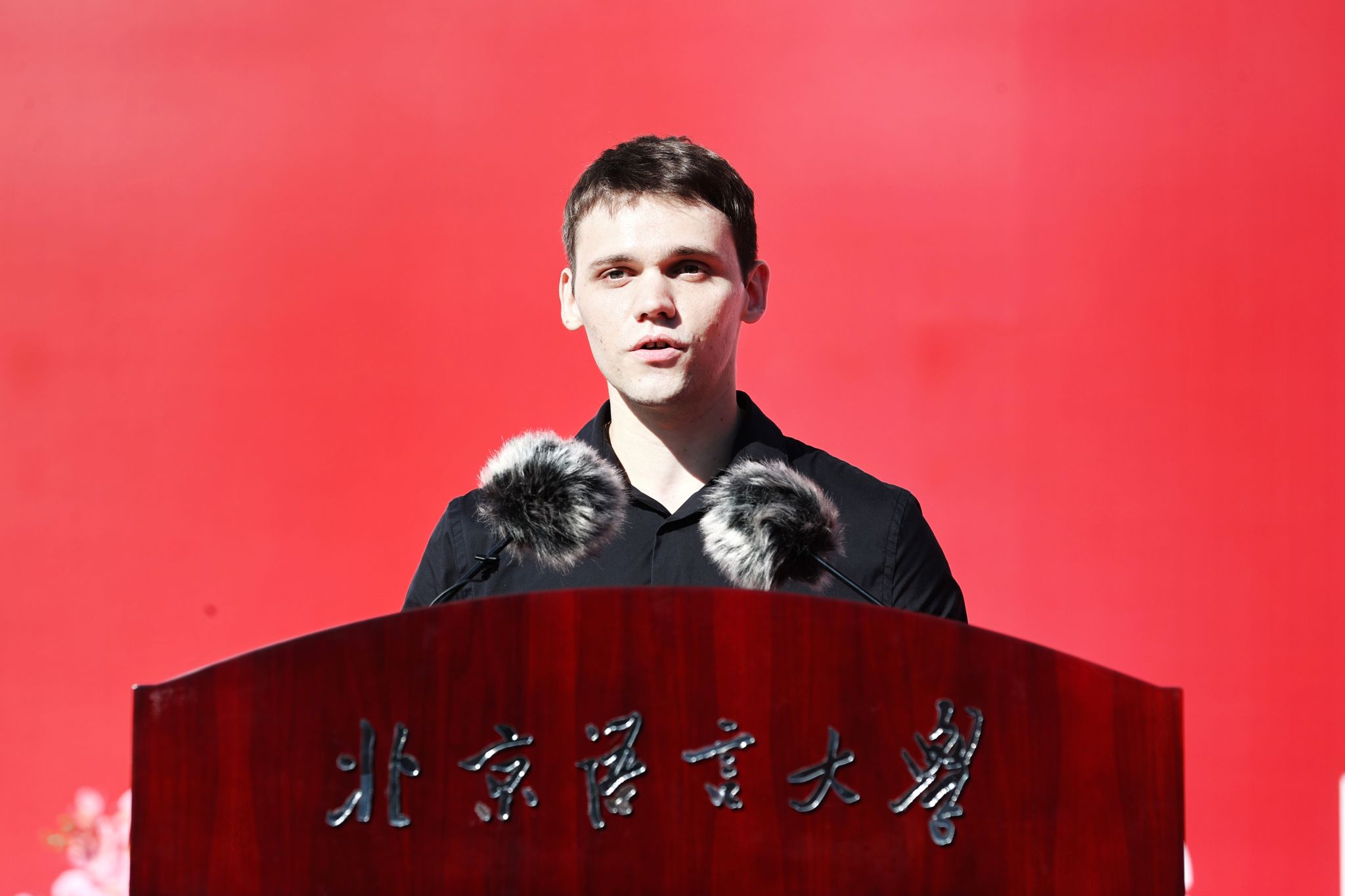 汉学与中国学学院2023级博士生、来自法国的魏麦文同学以“人生不设限,让梦想照进现实”为主题,向大家娓娓道来他的求学之路,用青年人特有的视角和思路实践着“用炙热的爱讲述中国,以蓬勃之姿亲睦世界!”的愿景。
