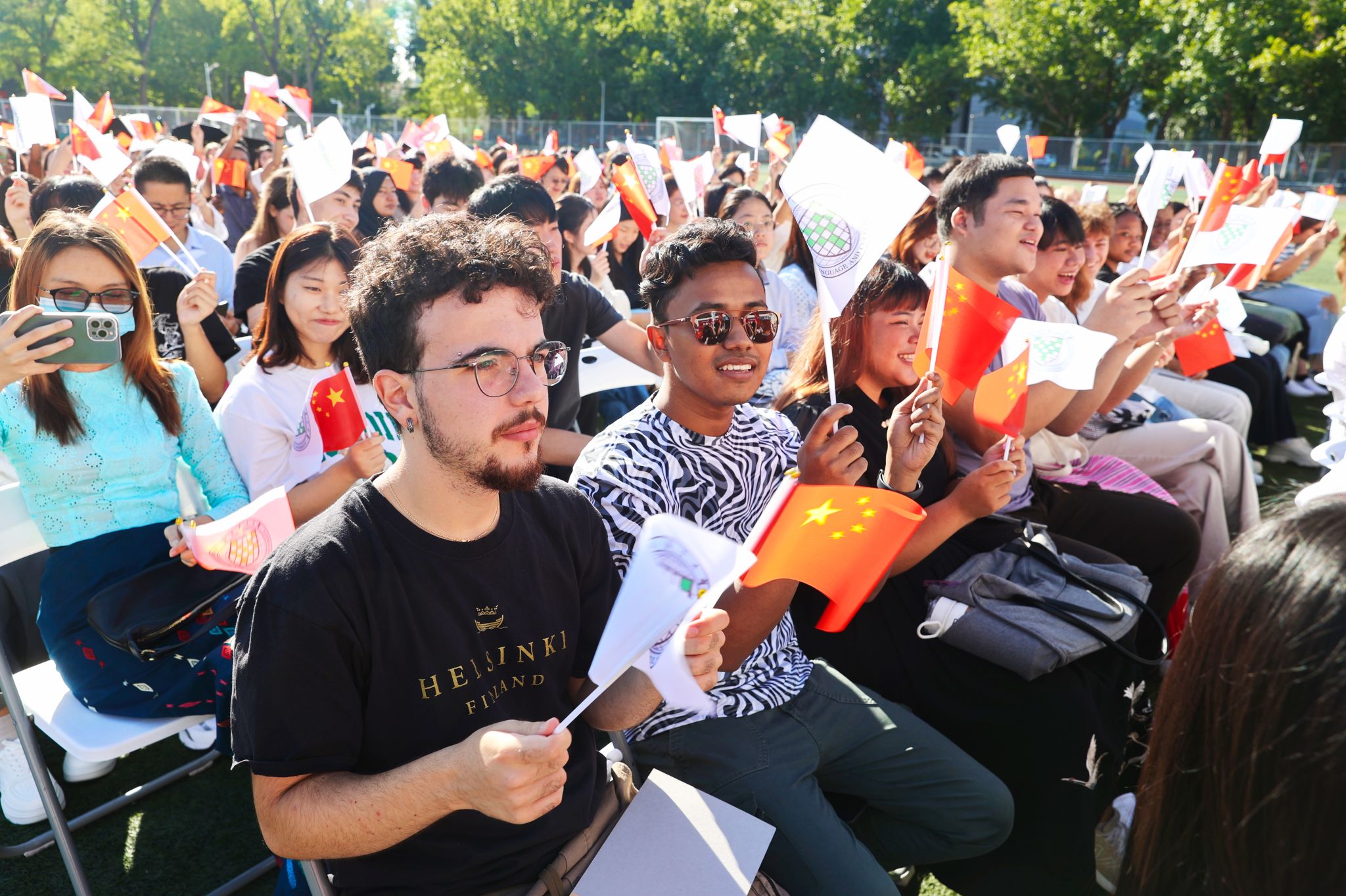9月12日上午,伴随新老生代表带来的热情洋溢的歌曲表演《第一天》和《有我》,来自祖国各地以及世界118个国家和地区的3734名新同学相聚在“小联合国”的风雨操场,共同迎来北京语言大学2023级新生开学典礼。