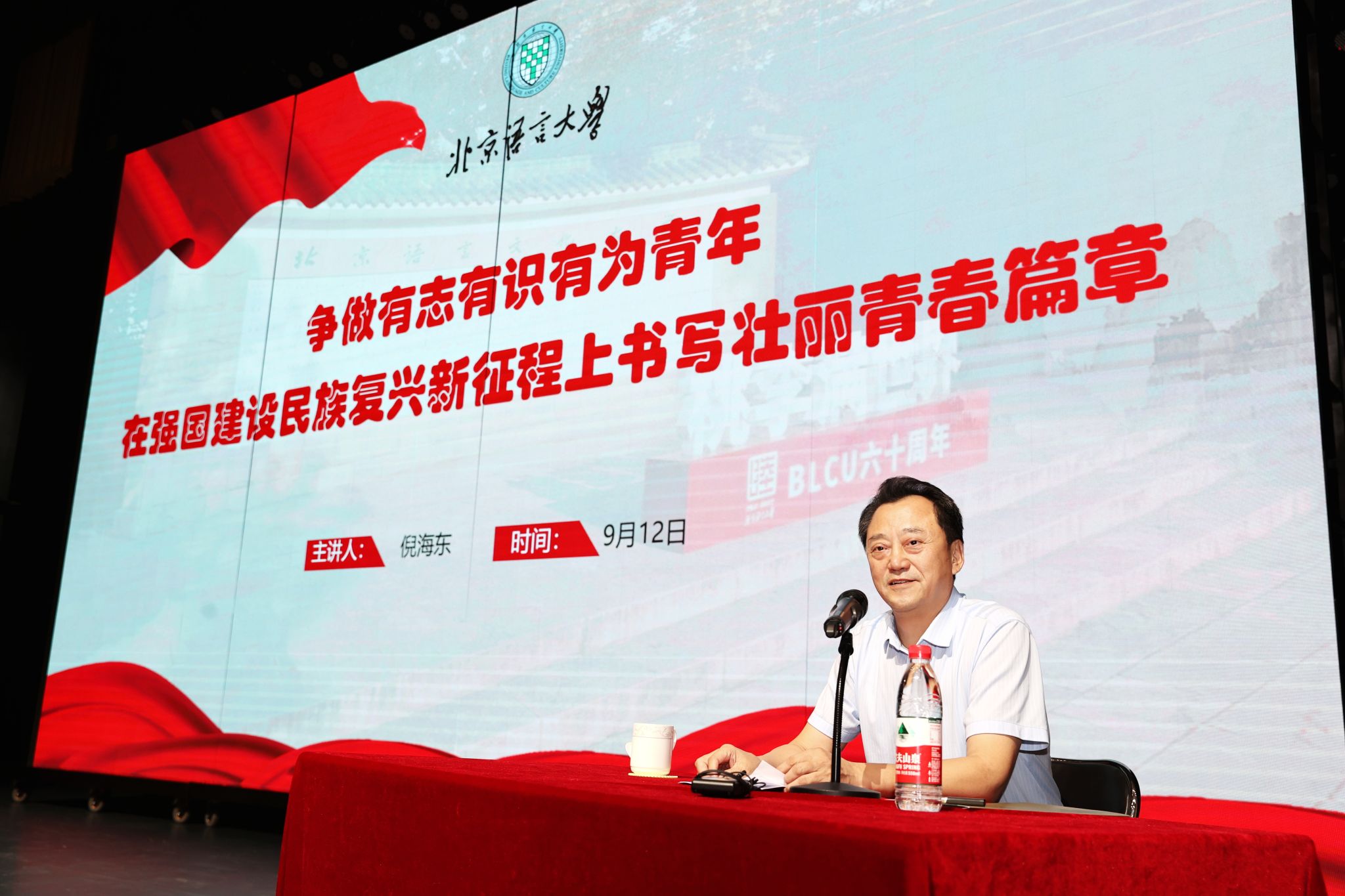 最后,倪海东书记以北语校歌中一句“跨过海浪云涛,为了梦中的寻找”寄语大家,“开学第一课”在同学们热烈的掌声中圆满结束。参加学习的新同学纷纷表示听完倪书记的课深受启发,获益良多,不仅加深了对北语的了解和如何对待大学生活的认识,更明确了自己所肩负的使命和责任,将不负学校期望,争做有志有识有为青年,努力成长为德智体美劳全面发展的社会主义建设者和接班人。