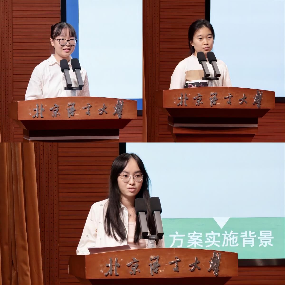 在2023年“挑战杯”全国大学生课外学术科技作品竞赛市赛优秀项目展示中,“青砺基层”社会治理专项赛道特等奖队伍——“运河文化古镇绿色发展方案设想-以运河古镇张家湾为例”的兰天同学向同学们详细介绍了项目方案,并结合国际经典实例提出了后续建议及保障措施。主赛道一等奖队伍——“北京市传统文化街语言景观的调查研究”的梁昱同学重点分享了选题方面中的经验,调研遇到的困难和应对措施,并向同学们推荐了查找文献的方法。同样,来自主赛道一等奖的“基于AR的孤独症儿童过街技能训练App设计研究”团队的王奕阳同学从项目的选题出发,介绍了她们历时三年为孤独症儿童做出的不懈努力。