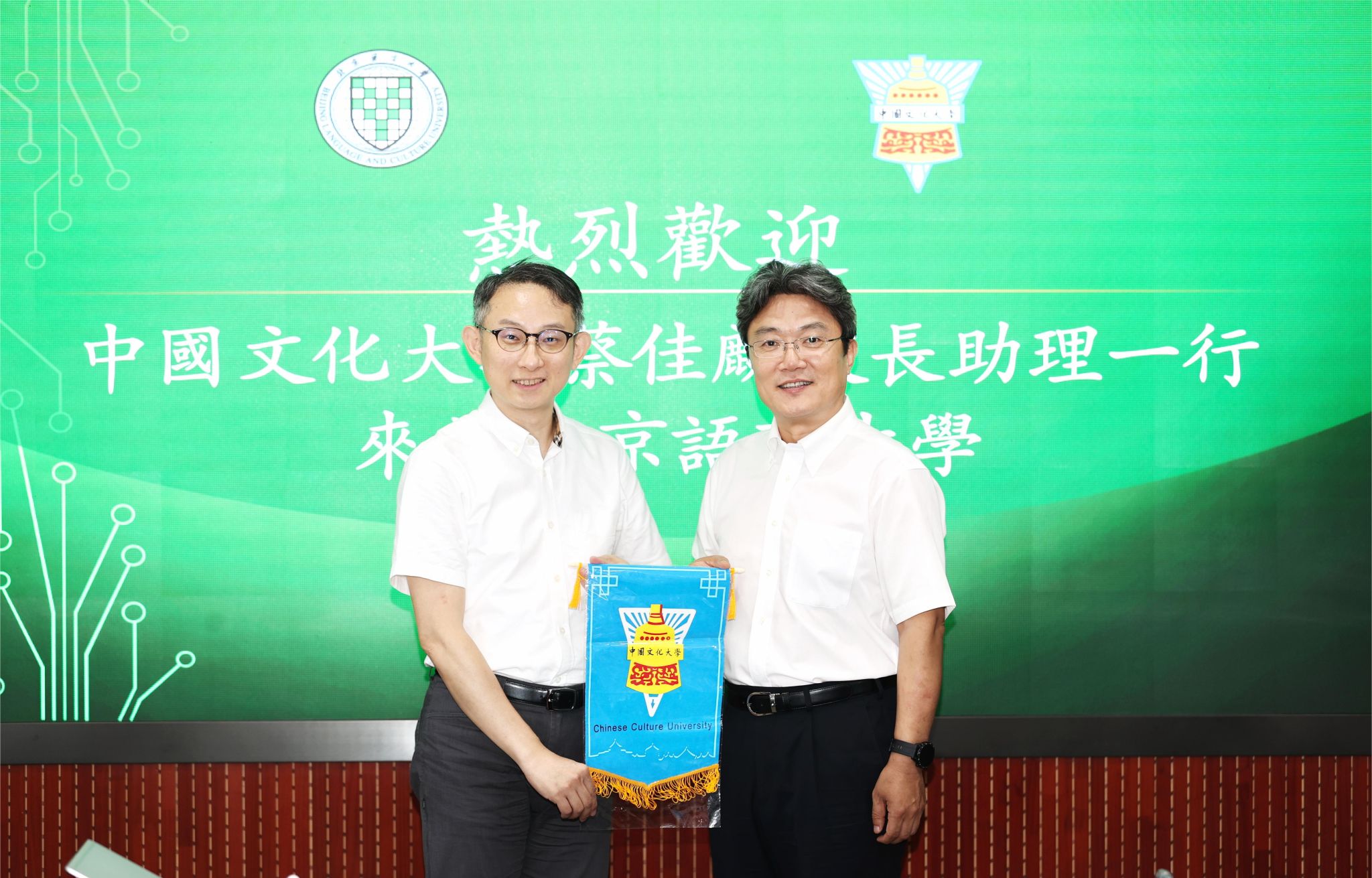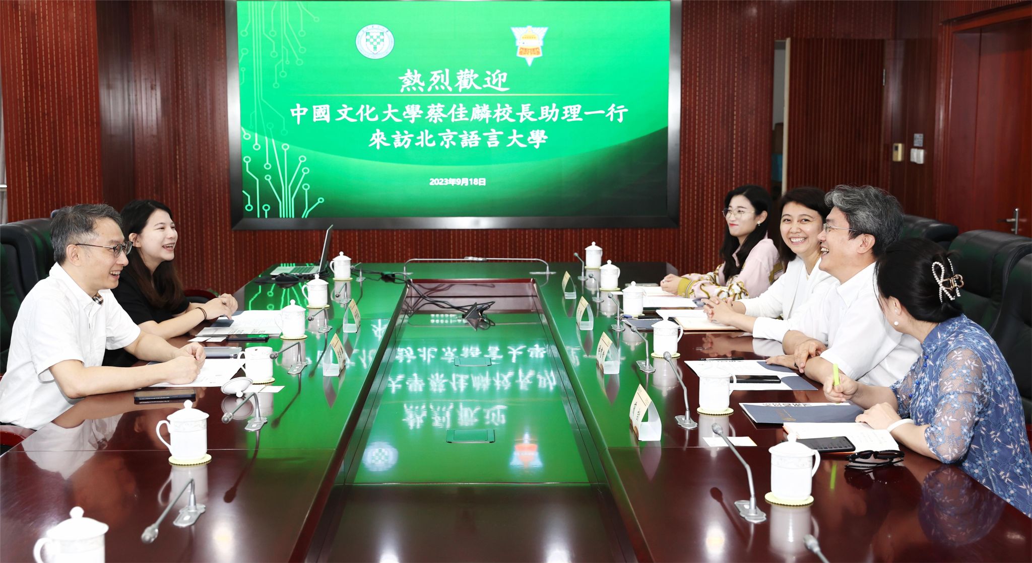 蔡佳麟先生表示来到北京语言大学非常欣喜,台湾中国文化大学与北京语言大学均建校于1962年,双方在语言文化方面有渊源且有特色。中国文化大学积极与大陆高校开展教育交流合作,蔡先生期待在中外学生学习实践、文博方向学生培养等方面与我校进行交流与合作。