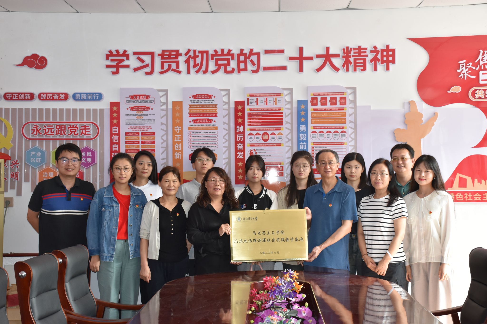 同日,魏晖副书记参加了在羊台子村和龙潭村举行的“北京语言大学马克思主义学院思想政治理论课社会实践教学基地”揭牌仪式并为基地揭牌。两个实践基地的建立,为马克思主义学院师生提供更广阔的学习感悟和实践锻炼平台,有助于引导师生深入了解社会、融入社会和服务社会。