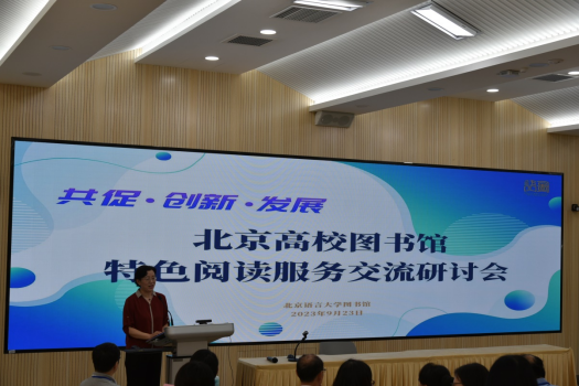 为推动北京高校图书馆阅读服务的创新与繁荣发展,促进各馆业务交流与互鉴,同时配合“语图奇妙游”第二季活动的开展,北京语言大学图书馆于2023年9月23日上午在教二楼举办了“共促·创新·发展北京高校图书馆特色阅读服务交流研讨会”,共同探讨高校图书馆在社会主义文化强国建设背景下阅读服务的创新理念、发展方向和实践探索,共促高校图书馆事业高质量发展。