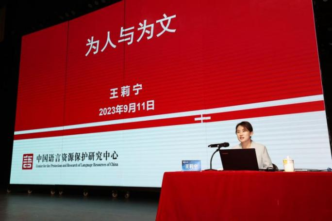 9月11日,语言科学院王莉宁教授以《为人与为文》为主题对研究生新生进行科学研究与学术规范指导,从研究生学术生涯中的“几对关系”出发,为同学们提出了中肯的建议,引导同学们将“小我”融入“大我”,争做堪当时代重任的学术人才。