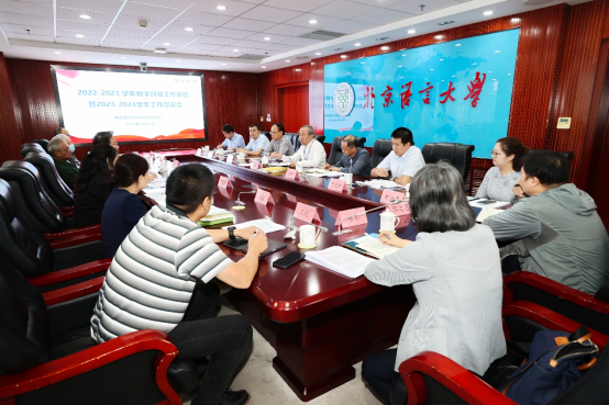 9月27日,北京语言大学2022-2023学年教学督导工作总结暨2023-2024学年工作部署会在综合楼909会议室召开。校长段鹏、校党委副书记魏晖出席会议并讲话,校长助理郭鹏、教学督导组专家和教务处、国际教育管理处、研究生院、学生处负责人及各教学科研单位教学负责人参加会议。会议由教育教学质量监测评估中心主任展明锋主持。