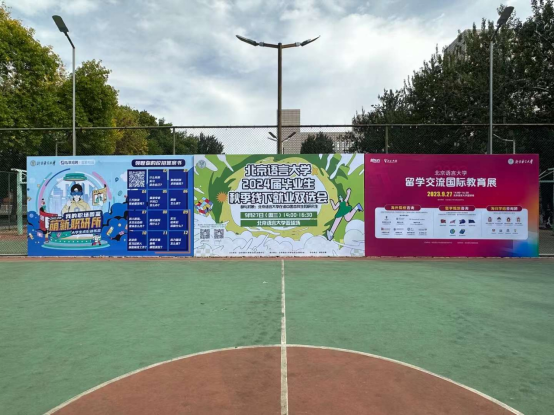 9月27日,北京语言大学2024届毕业生秋季线下就业双选会暨留学交流国际教育展在篮球场顺利举行。黄益方副校长莅临双选会现场指导工作,听取用人单位招聘需求和留学交流国际教育展的规模设置,就业创业指导中心刘喆主任介绍了本次活动的基本情况。