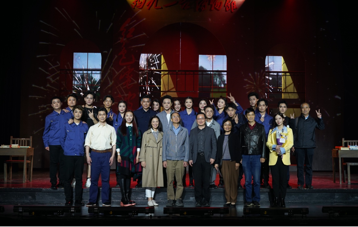 在演出结束后,张姣老师作为主创代表上台发言,并阐述创作构思,她表示“音乐剧是具有综合性的舞台艺术,也是备受当代人喜爱的表演方式。创作《红色电波》这部音乐剧,以新兴的艺术形式、富于时代感的音乐语汇讲好中国故事,体现了当代青年对红色文化基因的传承。最后,校领导上台与全体演员亲切交流,并合影留念。