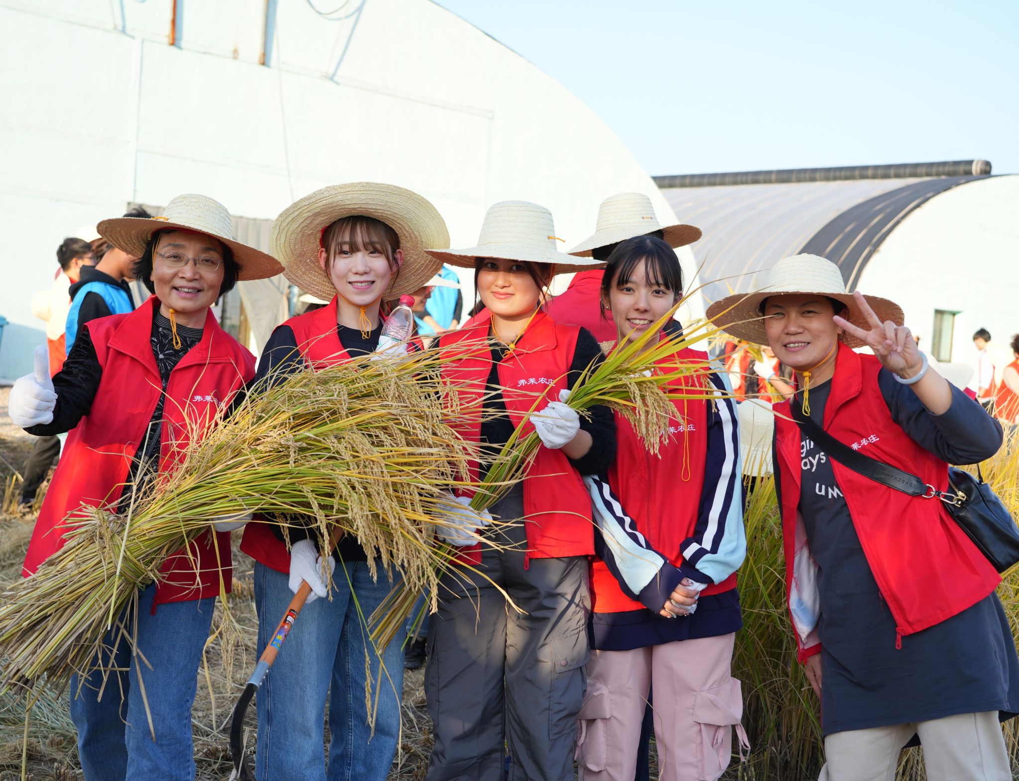 随后,同学们来到弗莱农庄这一国家级农耕文化实践营地,在这里开启一场深度体验中国传统农耕文化魅力、感受中国现代农业特色的旅途。通过参观文化长廊和草莓农业科技大棚,同学们了解到我国农业科技的发展历史。大家收割京西稻谷、采收优质红薯,亲身体验了“丰收”的喜悦。