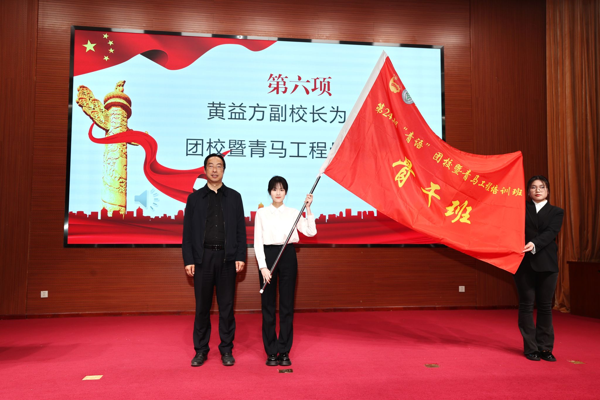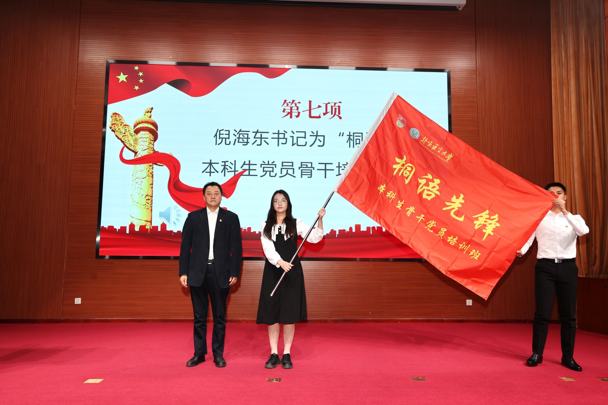 校党委书记倪海东、校党委常委副校长黄益方分别为“桐语先锋”本科生骨干党员培训班和“青语”团校暨青马工程骨干班授旗。