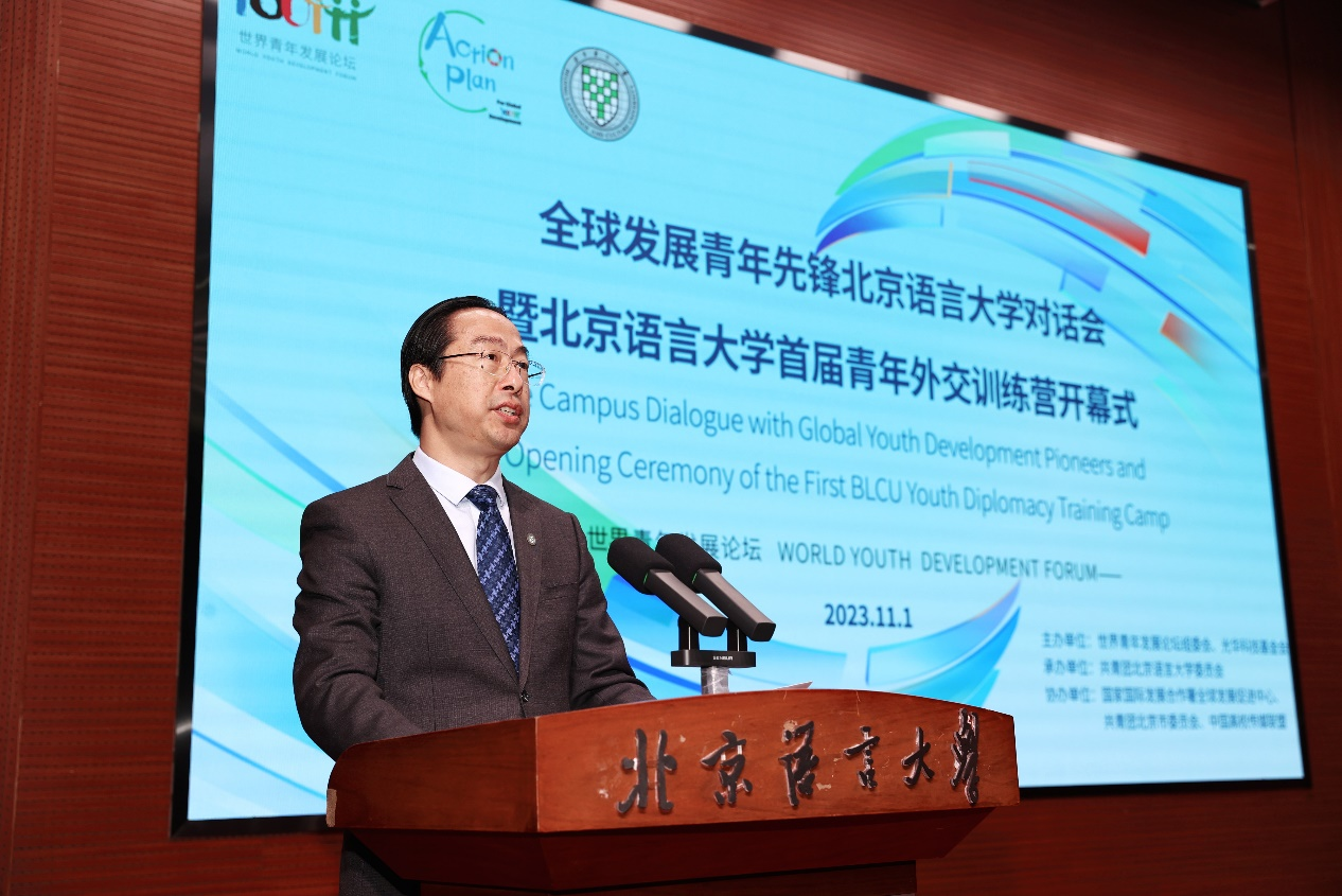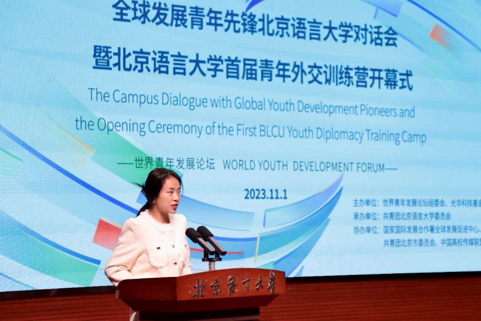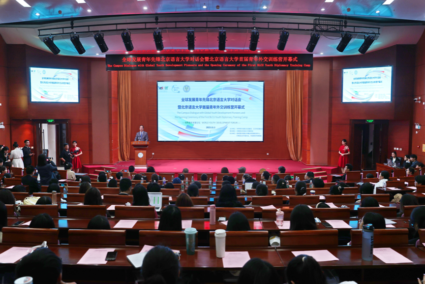 11月1日上午,全球发展青年先锋北京语言大学对话会暨北京语言大学首届青年外交训练营开幕式在北京语言大学逸夫报告厅顺利举办。对话会作为2023年世界青年发展论坛的配套活动,核心主题为“落实联合国2030可持续发展议程和全球发展倡议的青年行动”,旨在为广大中外优秀青年提供跨文化沟通平台,展现青年推动构建人类命运共同体的智慧和力量。北京语言大学党委常委、副校长黄益方,全球青年发展行动计划项目骨干、各国青年组织负责人和青年领袖,以及世界青年发展论坛组委会成员、北京语言大学相关职能部门和培养单位负责人、师生代表等共同受邀参会。