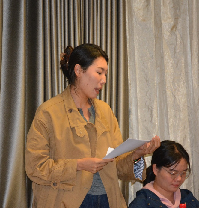 语言资源学专业博士生王琪结合自身目前的研究对课程设计提出了自己的见解。她提到,自己当前的研究主要集中在语言与伦理方面,但是单靠自己摸索会产生大量时间成本,因此在课程中加入相应的案例和知识框架将有利于研究的高效进展。