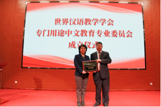 本次研讨会还举行了世界汉语教学学会专门用途中文教育专业委员会成立仪式。世界汉语教学学会副秘书长杨金成宣读专委会的成立公告并授牌,专委会主任委员姜丽萍教授发表任职感言。