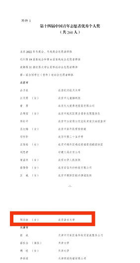 我校邹泺铱老师荣获第十四届中国青年志愿者优秀个人奖