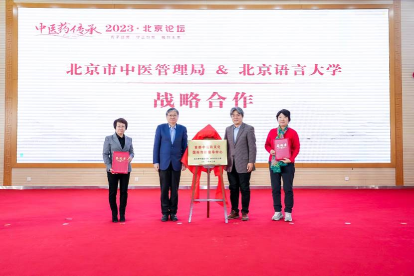 12月16日,张宝钧副校长出席2023“中医药传承”北京论坛,与北京市中医管理局屠志涛局长互换战略合作协议,并为双方共建的“首都中医药文化国际传播指导中心”隆重揭牌。校医院郭青院长参加活动,应用中文学院、中华文化研究院等单位积极参与合作项目。