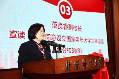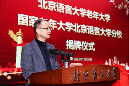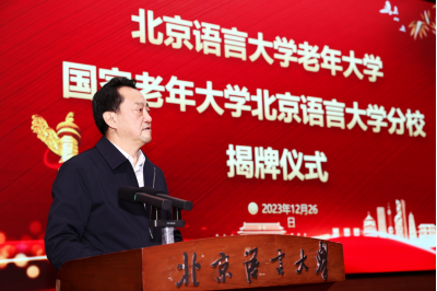 12月26日,北京语言大学老年大学、国家老年大学北京语言大学分校揭牌仪式在学校逸夫报告厅隆重举行。
