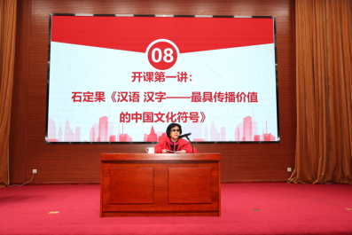 揭牌仪式后,北京语言大学退休教授石定果作了开课第一讲,石老师以“汉语 汉字——最具传播价值的中国文化符号”为题,深入浅出的把听众带进汉语的奇妙世界。