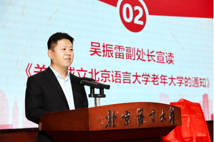 会上,国家老年大学副校长范贤瑞宣读了《关于成立国家老年大学北京语言大学分校的决定》,北京语言大学人事处副处长吴振雷宣读了《关于成立北京语言大学老年大学的通知》,出席仪式的领导共同为老年大学揭牌。