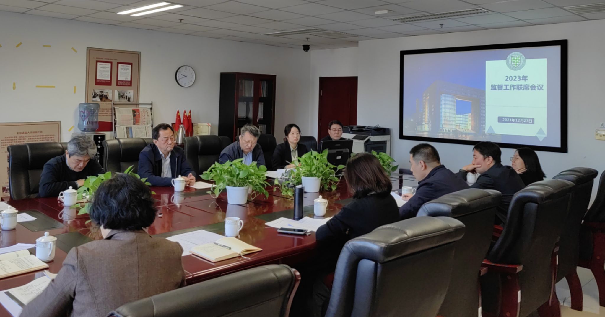 为深入推进全面从严治党,加强学校党委对监督工作的统筹谋划,根据《北京语言大学监督工作联席会议制度》(校党字〔2023〕22 号),2023年12月27日学校党委在综合楼716召开2023年度监督工作联席会。会议由学校党委书记倪海东主持,党委副书记、纪委书记马贵生,党委常委、副校长张宝钧出席会议。