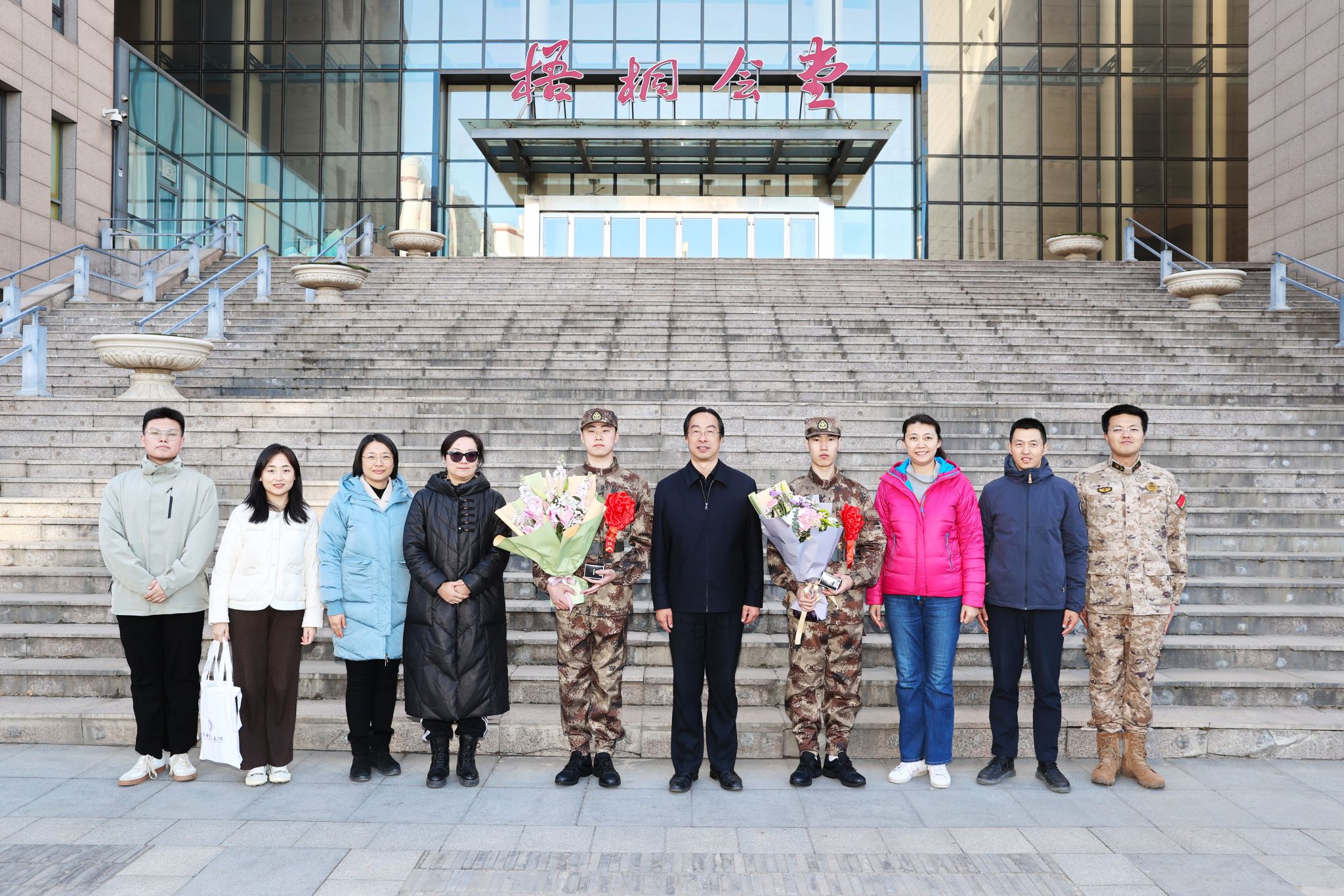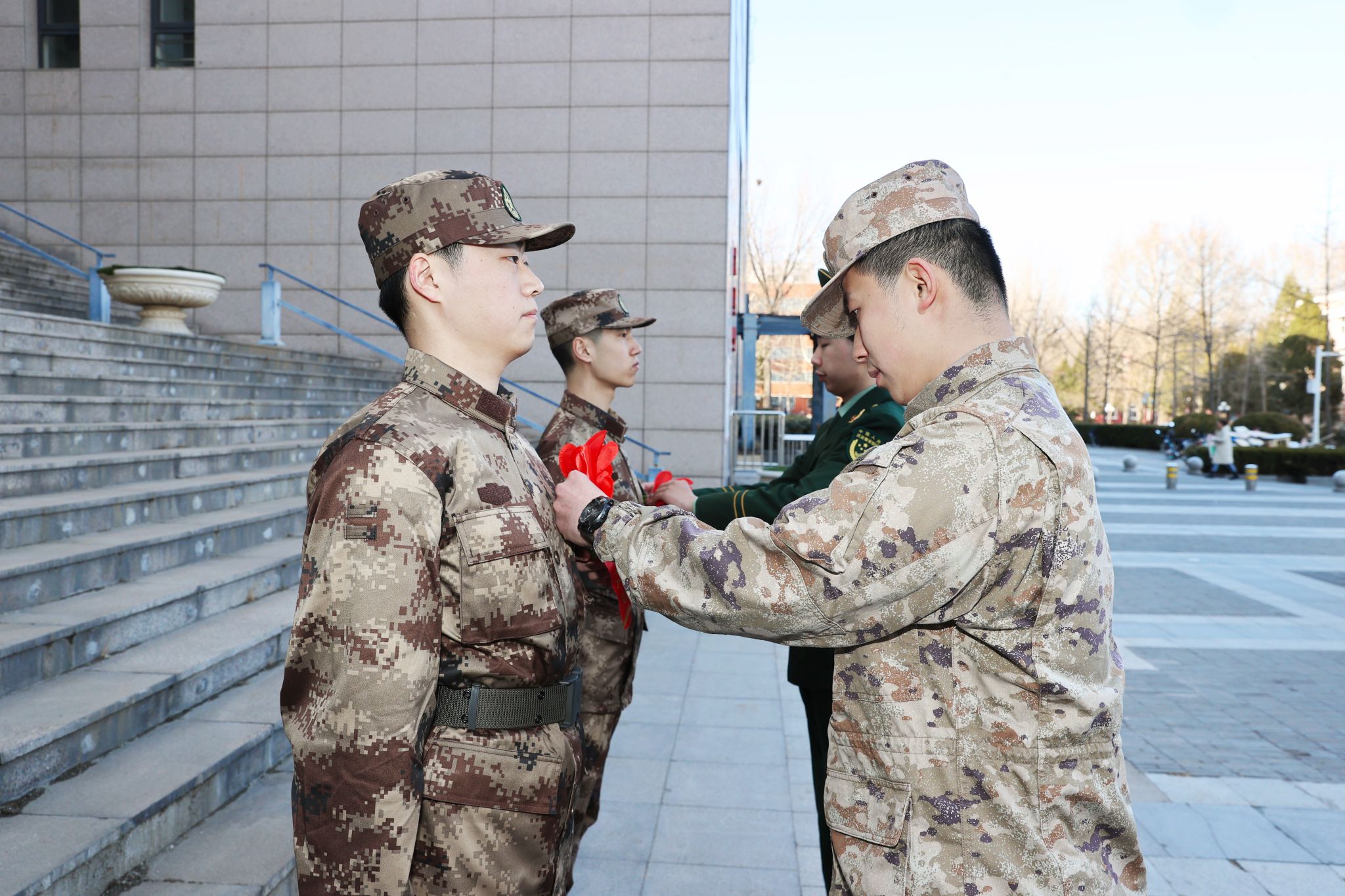 3月8日,校党委常委、副校长黄益方,校武装部部长武玉洲以及有关学院学生工作负责人、辅导员老师在梧桐会堂东侧广场欢送即将参军入伍的同学们。同学们一袭戎装,身姿矫健,目光如炬,展示了北语入伍学子携笔从戎、强军报国的坚定决心和昂扬奋进的精神风貌。黄益方副校长代表学校向即将奔赴军营的同学们赠送入伍慰问品并对大家表示祝贺,勉励他们向北语历届参军入伍同学学习,把握人生难得机遇,在人民军队这所特殊的大学校里锤炼忠诚品格和顽强意志,学习人民军队的光荣传统和优良作风,早日完成从一名青年学生向合格军人的转变,为自己争光,为家人争光,为学校争光,两年后以崭新的面貌回归校园。在场的各学院学生工作负责人及辅导员老师也为同学们送上了鲜花表示祝贺。北语退役大学生士兵代表为新战士们佩戴光荣花,新战士们以饱满的精神面貌迎接这庄严的一刻,“授花”授予的是使命,接过的是责任。自戴上红花的那一刻起,年轻的战士们就要奔赴新的哨位战位,肩负起神圣使命,守护无上荣光。大家纷纷表示,今后一定会服从命令、听从指挥、严守纪律、刻苦训练,做党和人民的忠诚卫士,为强军兴军伟大事业注入不竭的青春动力。3月9日,入伍同学出发前往役前训练基地正式开始军旅生涯,众多在校师生和同学父母亲友前来欢送,为即将奔赴军营的北语学子们送上最真切的祝福。