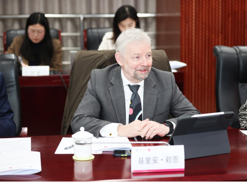 英国诺丁汉特伦特大学副校长基里安·赖恩(Cillian Ryan)教授在会上强调了两校跨越二十年的深厚合作基础,对“文化遗产发展”项目的成功给予了高度评价,该项目凝聚了两校优势学科的力量,不仅体现在教学质量上,还通过丰富的学生交流活动不断巩固和深化两校友好合作关系。他特别提到了诺丁汉特伦特大学近年来所斩获的多项荣誉,如年度最佳大学奖、英国政府卓越教学框架评估(TEF)金奖,以及女王周年纪念奖,这些成就有力地印证了该校在教学与文化遗产研究方面的领先地位。他对于“文化遗产发展”项目在合格性评估中获得通过表达了欣喜之情,并衷心感谢北京语言大学团队的辛勤付出与卓越贡献。未来,他寄望双方能在教育合作层面持续拓展,共同推动项目升级与互利共赢。