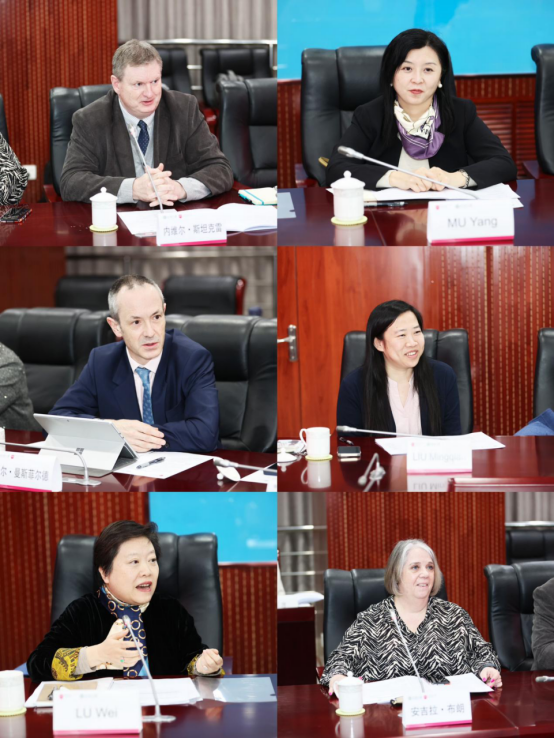 陆薇教授与安吉拉·布朗(Angela Brown)教授在探讨中详细策划了增加学生实习机会、组织教师互访与学生交流的具体措施。此外,穆杨教授针对课程体系提出了前瞻性建议,主张增设关于文化传播、文化遗产数字化等适应AI时代需求的新课程,以更好地服务于文化遗产的发展潮流。对此,Neil Mansfield教授表示全力支持,并分享了诺丁汉特伦特大学在创意艺术与设计、文化遗产数字化等方面的突出成就,期待与我校联手拓展相关领域的深度合作。