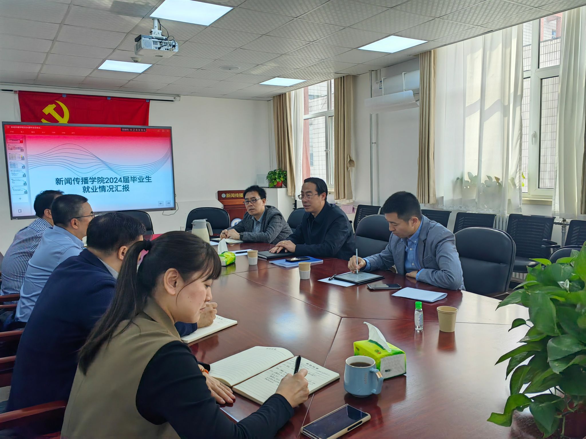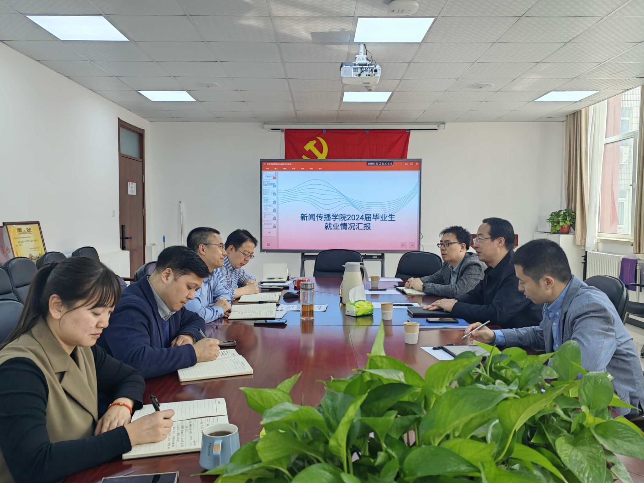 云国强院长就新闻传播学院2024年整体工作进行了汇报。在学校即将召开第十次党代会的大背景下,学院将紧密围绕学校中心工作,落实配合好“学科建设年”工作目标和要求,构建夯实未来学院事业发展的“新四梁”格局,将学院发展成效凝聚和体现到学生就业工作上来。