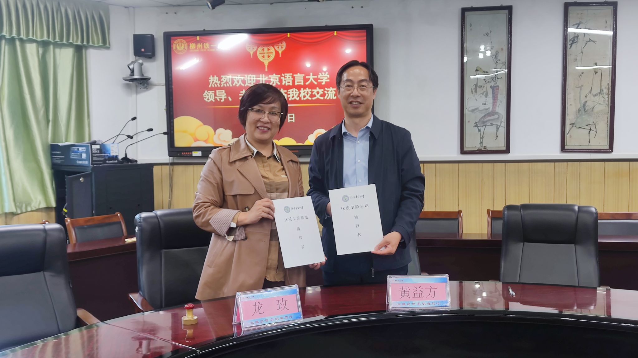 与柳州铁一中学龙玫校长签约优质生源基地