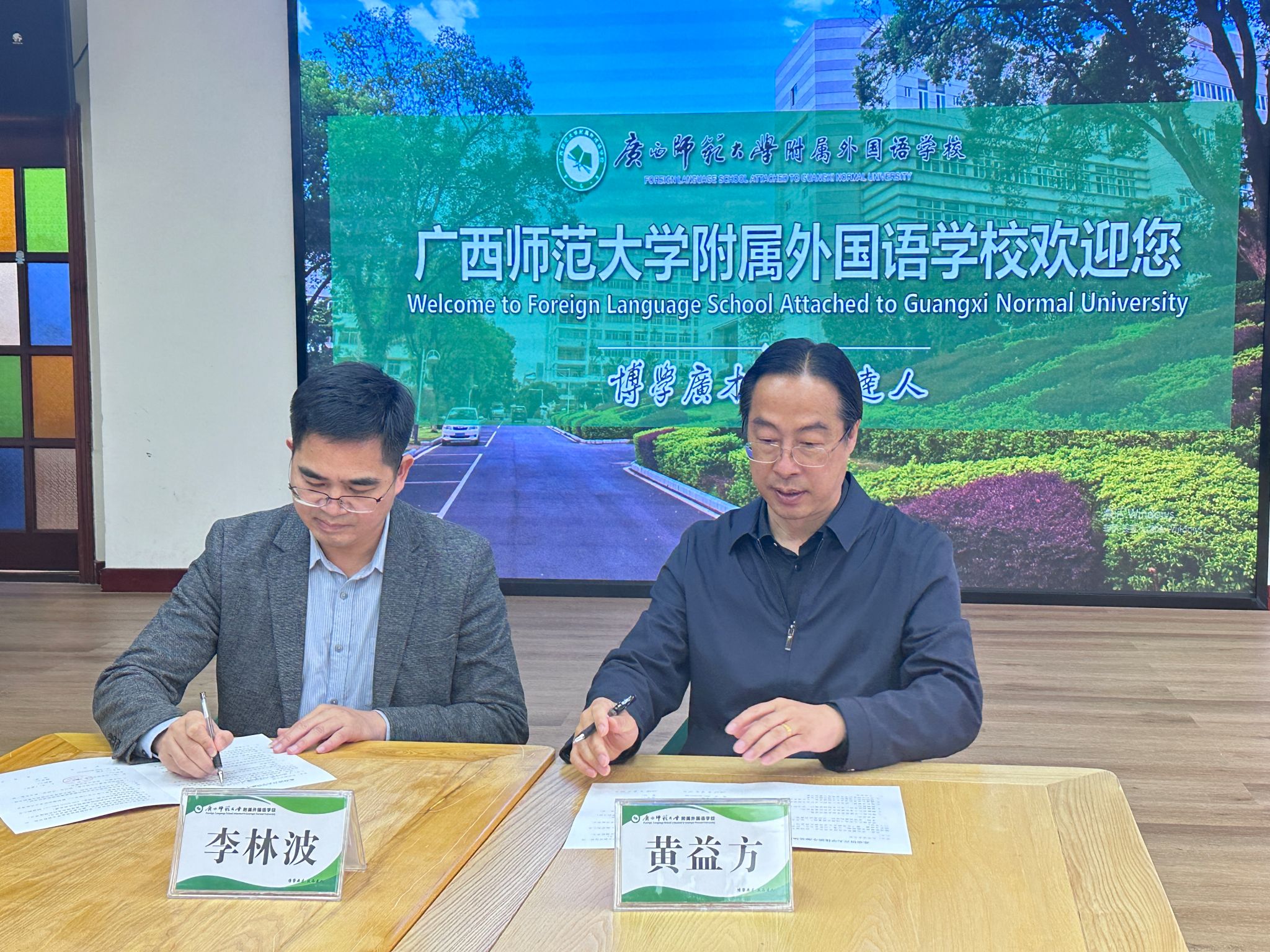 与广西师范大学附属外国语学校校长李林波签约优质生源基地