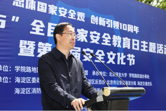 北京语言大学党委常委、副校长黄益方在致辞中指出,联盟以“总体国家安全观 创新引领10周年”为主题举办本次安全文化节,是深入学习贯彻习近平新时代中国特色社会主义思想,全面落实总体国家安全观的生动实践,同时也是校地警三方力量协同共创平安北京、平安校园的有力探索。希望联盟各单位进一步团结奋进,促进各校之间,校地警之间共谋、共建、共享的工作新局面,在学院路地区高校中营造人人知安全,人人讲安全,人人守安全等浓厚氛围。