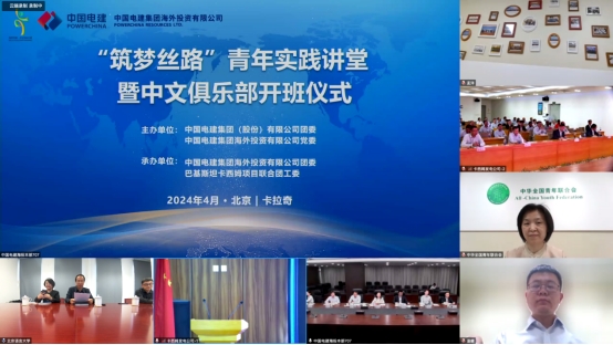 中国电建团委在团中央国际联络部的支持下,拟在“筑梦丝路”青年发展计划框架下,与北京语言大学应用中文学院合作开展“筑梦丝路”中文俱乐部项目。以中国电建在“一带一路”沿线各项目外籍员工和属地青年为对象,开展中文教学。第一期依托中巴青年创业就业赋能计划,以中国电建巴基斯坦卡西姆项目为试点。