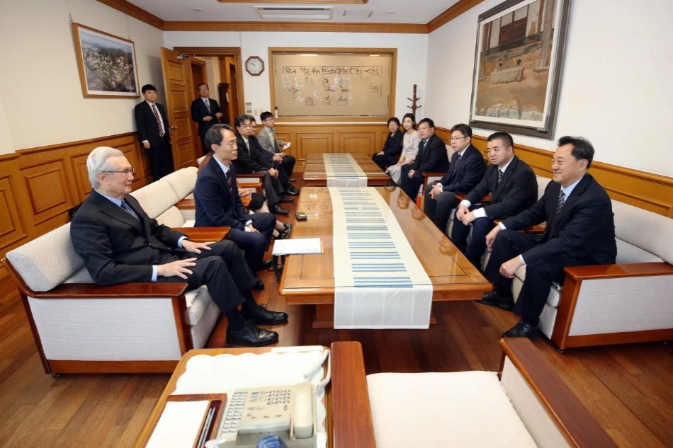 4月23日,倪海东书记率团赴韩国祥明大学与校长洪成泰会谈。倪海东书记感谢祥明大学多年来持续派遣团体学生参加北语的寒暑假项目,希望今后继续选派学生到我校参加各类留学项目。双方均表示将加强两校学术交流,尽快恢复新冠疫情前的“2+2联合培养”本科生项目及来华留学项目的人数规模,促进两校的国际学术交流及国际中文教育合作,推进两校在教育领域方面的深度合作。