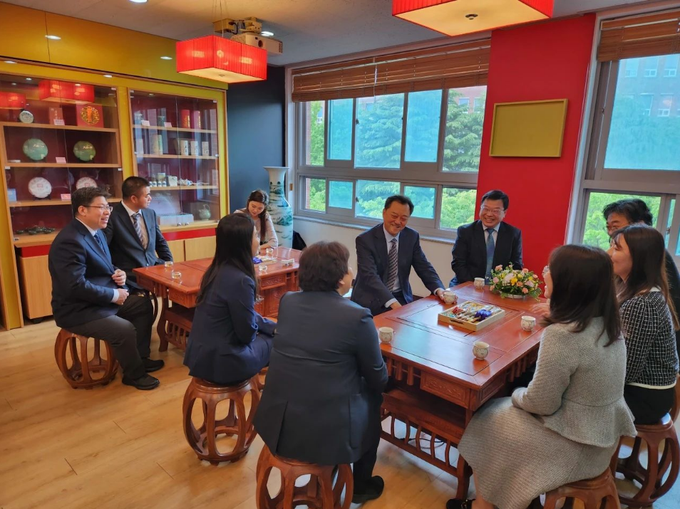 倪海东书记与启明大学孔子学院韩方院长尹彰浚、中方院长赵菁以及中外教师进行亲切会谈