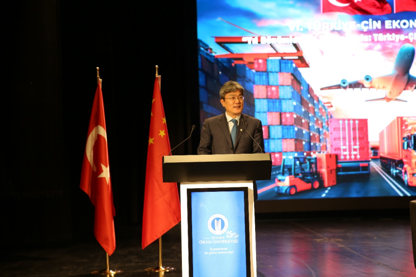 4月18日,奥坎大学及其孔子学院在我驻土耳其大使馆及我驻伊斯坦布尔总领事馆支持下,联合举办以“展望中土经贸关系”为主题的第六届中土经贸论坛。我驻土耳其大使刘少宾、驻伊斯坦布尔代总领事吴健、北京语言大学副校长张宝钧、奥坎集团董事长奥坎、奥坎大学校长穆安、TUSIAD土中理事会主席兼DEIK土中理事会主席科尔汉及土商界和在土中资企业代表等900余人出席论坛。