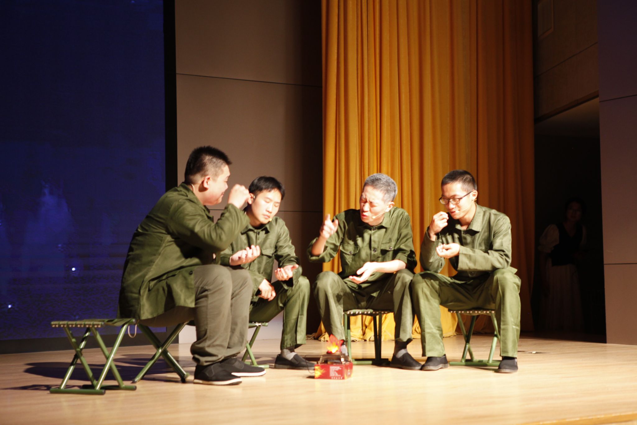 最后,原创剧目《扶摇》压轴出场,该剧讲述了老兵陈立与大学生付兴跨越时代的自我探索与彼此救赎。在一次有关养老院的志愿活动中,大学生付兴结识了一位奇奇怪怪的老同志,而一个偶然的机会,一本尘封已久的日记向付兴揭开了老同志的秘密,表现了“英雄”背后的辛酸。剧情环环相扣、动人心弦,演员们情绪饱满、演绎到位,高潮处不少观众感动落泪。